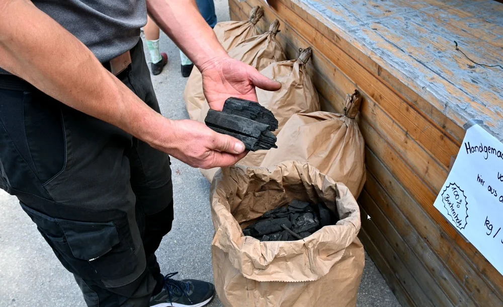 Dann wurde der Meiler geöffnet und die Kohle konnte geerntet werden. Heiko Wergen: „Es sind rund 2,2 Tonnen Kohle geworden, die zum Grillen bestens geeignet ist.“ In Zehn-Kilo-Säcken wird die Kohle derzeit verkauft. Sie kann an der Heimbacherstraße 74 a in Schmidt nach telefonischer Absprache unter 0160 / 2816085 abgeholt werden.